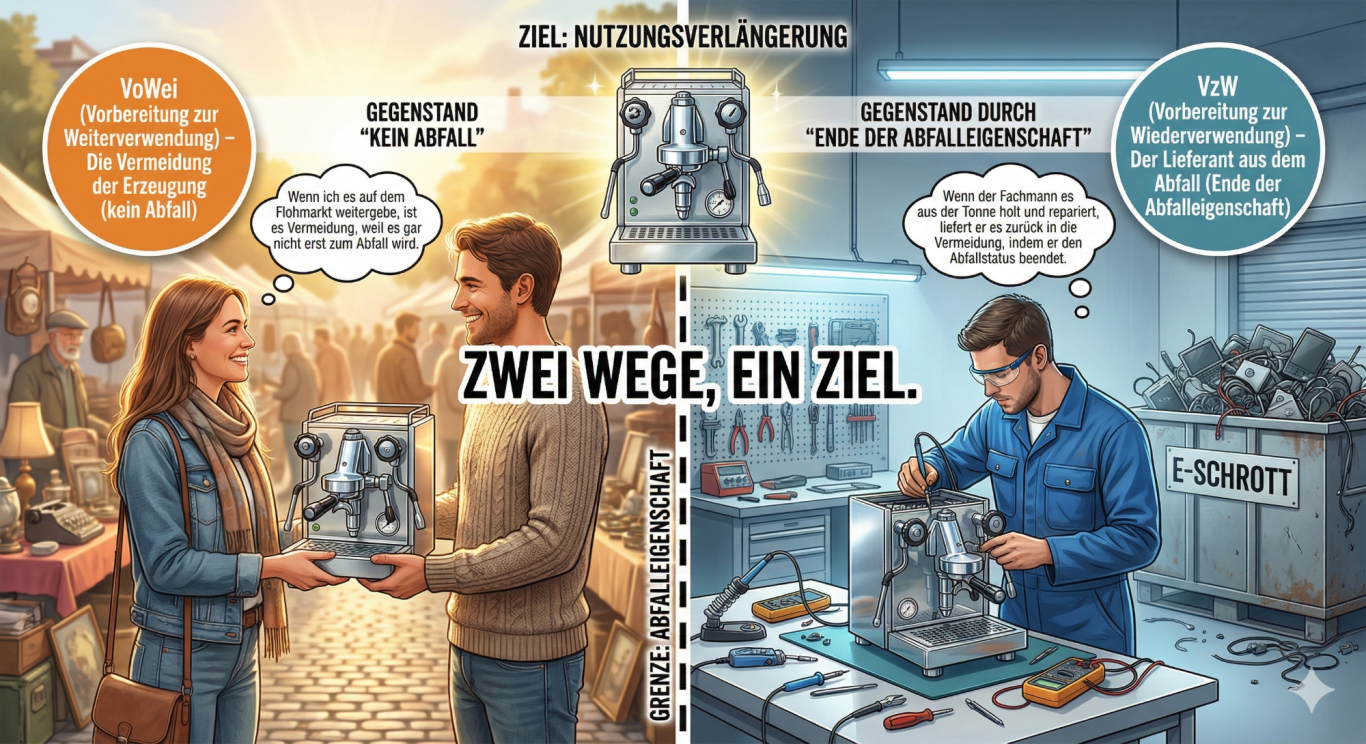 Die Unterscheidung, ob eine Maßnahme der Weiterverwendung von Gegenständen oder der Wiederverwendung von Abfällen dient, ist das Herzstück einer funktionierenden Kreislaufwirtschaft. Doch in der Praxis herrscht oft Unklarheit – insbesondere im Hinblick auf Sozialkaufhäuser und die seit dem 1. Juni 2012 geltende Rechtslage.